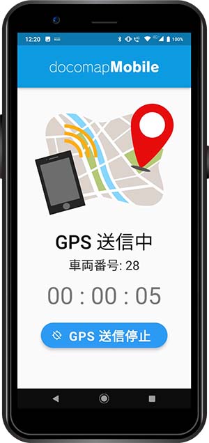 This is a DoCoMAP-compatible smartphone application plan that is convenient when location information management is suddenly required for vehicles not normally managed via GPS terminals, or when managing the locations of partner company vehicles where installing dedicated GPS terminals is difficult.