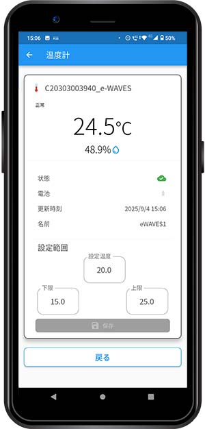 The TR41A (Ondotori Jr.) from T&D and the e-WAVES BLE-type thermometer from Taiheiyo Kogyo enable real-time monitoring, recording, and storage of temperature data. Temperature conditions can also be checked on the DoCoMAP map. Notifications are sent when temperatures exceed set values, and recorded results are reflected in daily reports.