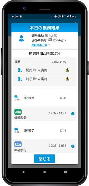 In addition, docomapPLUS is equipped with a function that can automatically create daily reports from the information recorded by the driver, which reduces the driver's clerical work and makes it possible to digitize and visualize the daily report.