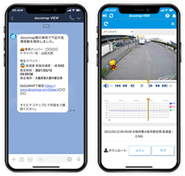 docomapEyeは危険挙動を感知すると、即時に管理者にLINE・Wowtalk もしくはメールにて、その挙動があった旨を通知することが可能ですので、 管理者はリアルタイムに乗務員の安全管理を行うことが可能です。